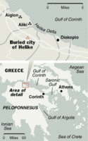 Die Lage des antiken Helike zwischen Aegion & Diakofto.